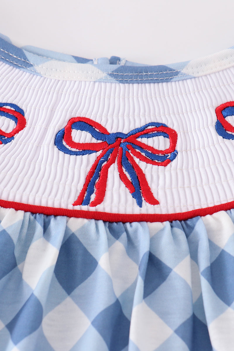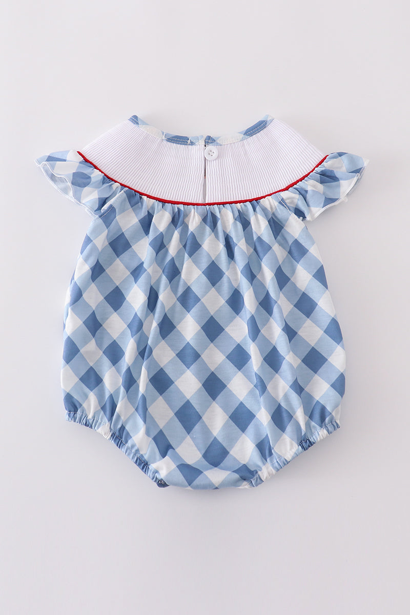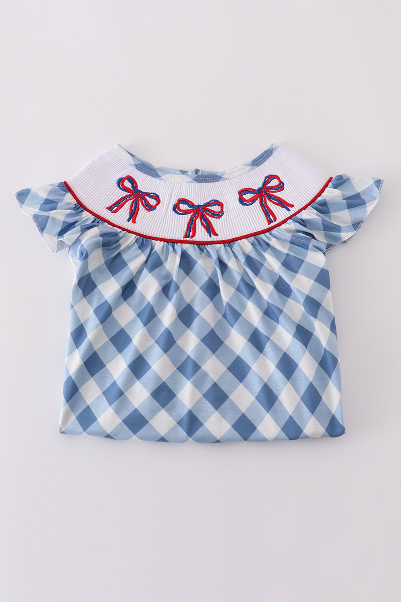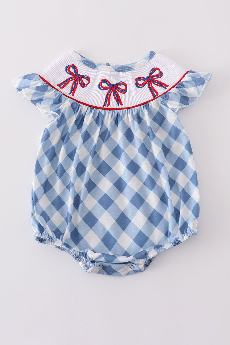 Get ready to turn heads with our Blue Bow Embroidery Smocked Bubble. This cute and playful outfit features a unique smocked design and delicate bow embroidery. Perfect for any occasion, it's sure to be a hit with parents and little ones alike!