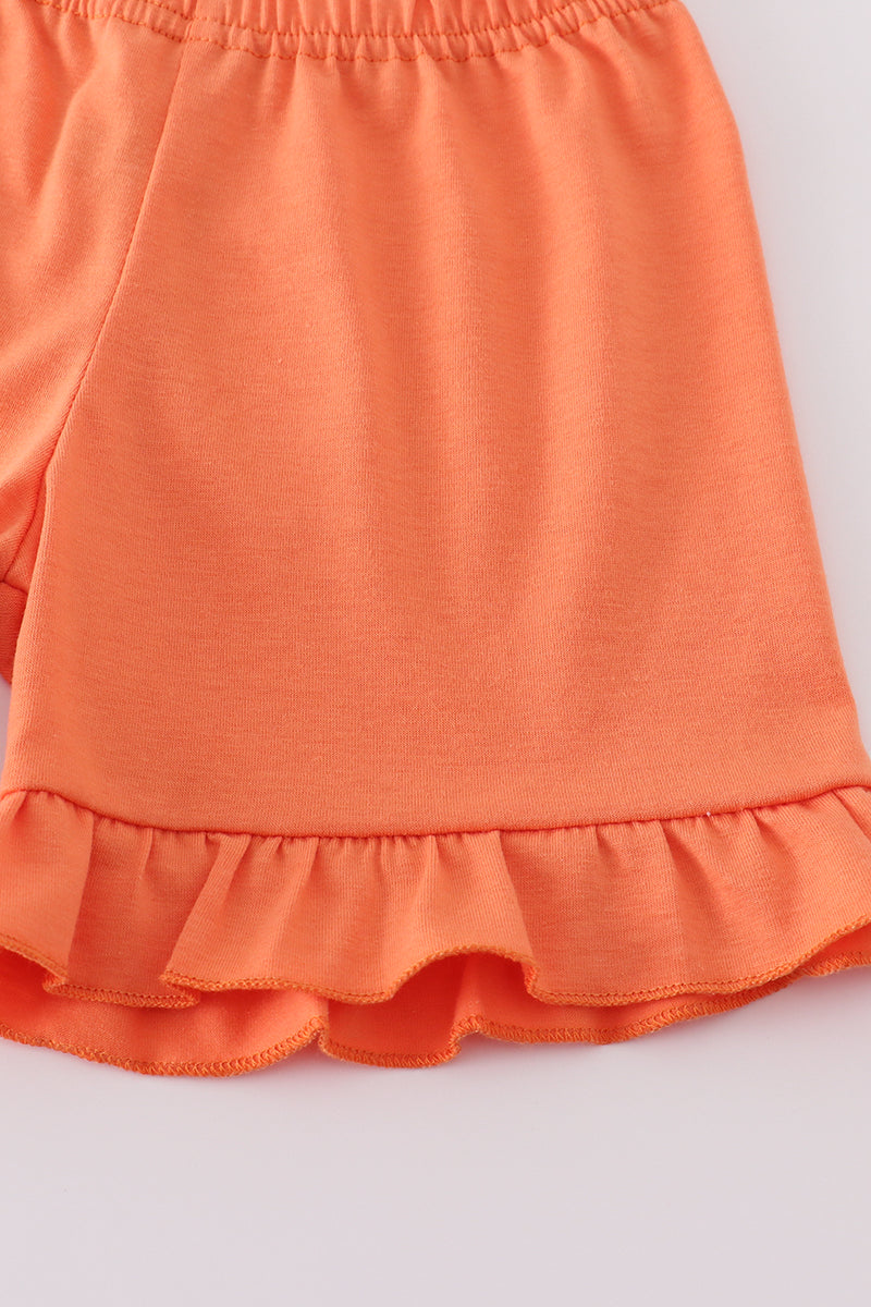 Go for a playful look with this blue dinosaur embroidery gingham ruffle shorts set. Not only is it cute and quirky, but it also offers a fun twist on classic gingham with its embroidered detail. Perfect for a day out or lounging at home, this set is sure to bring a smile to your face.