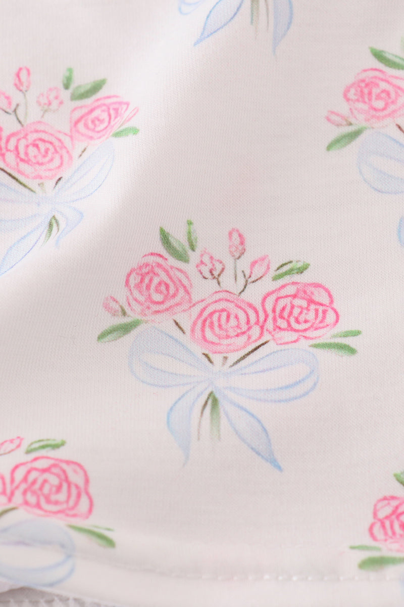 Get ready to bloo-m into style with our Blue Floral Bow Print Ruffle Bloomer Set! Perfect for your little one, this set features a charming blue floral print and adorable ruffle detailing. Add a touch of playfulness and charm to any outfit (and diaper change) with this cute and quirky bloomer set. (Seriously, it's ruff-ly that good.)