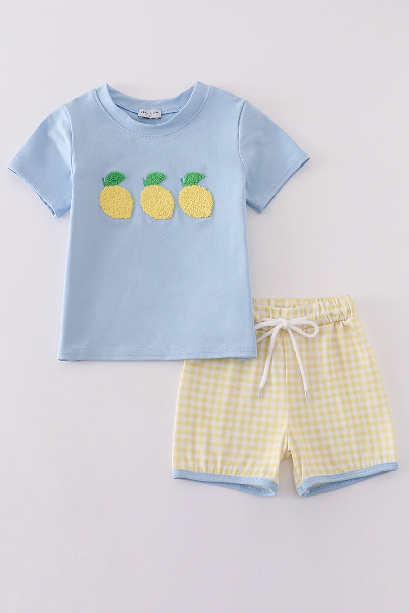 Transform your little one into a fashion icon with our Blue Lemon French Knot Boy Set! This set features charming lemon details and playful french knots, ensuring your child will stand out in any crowd. Perfect for casual outings or special occasions.