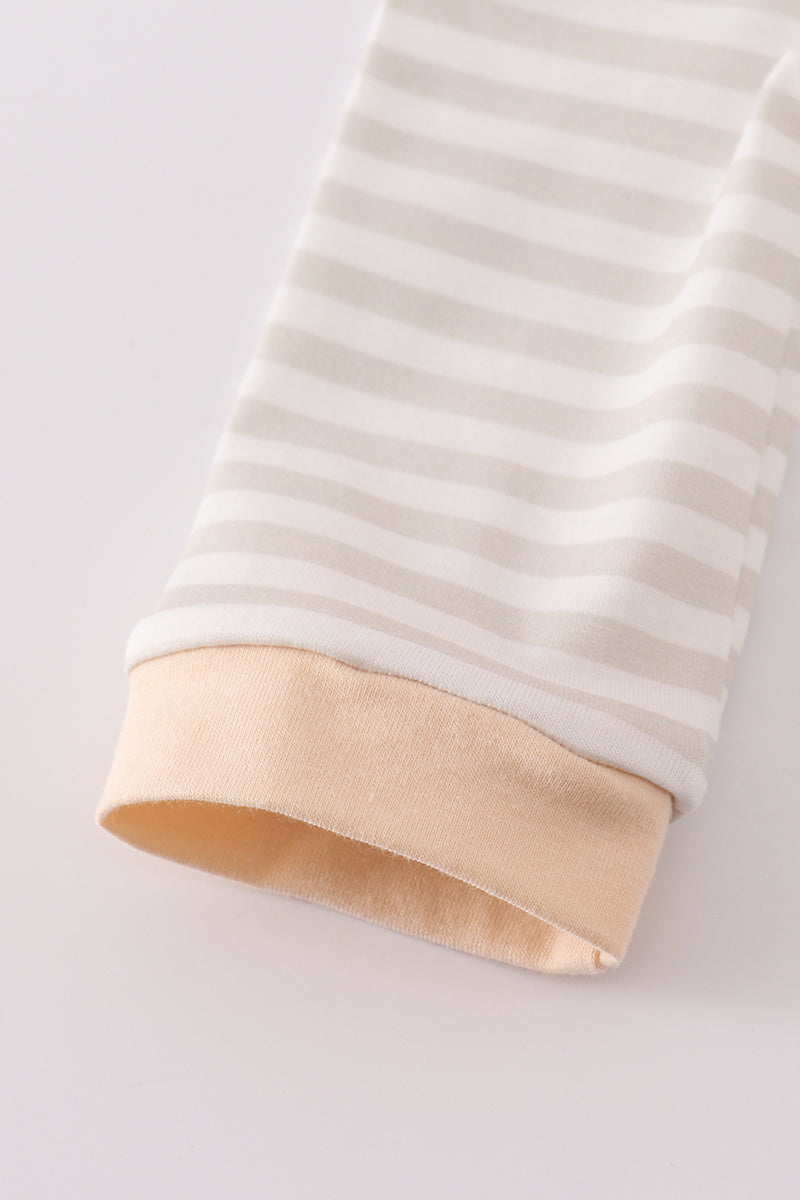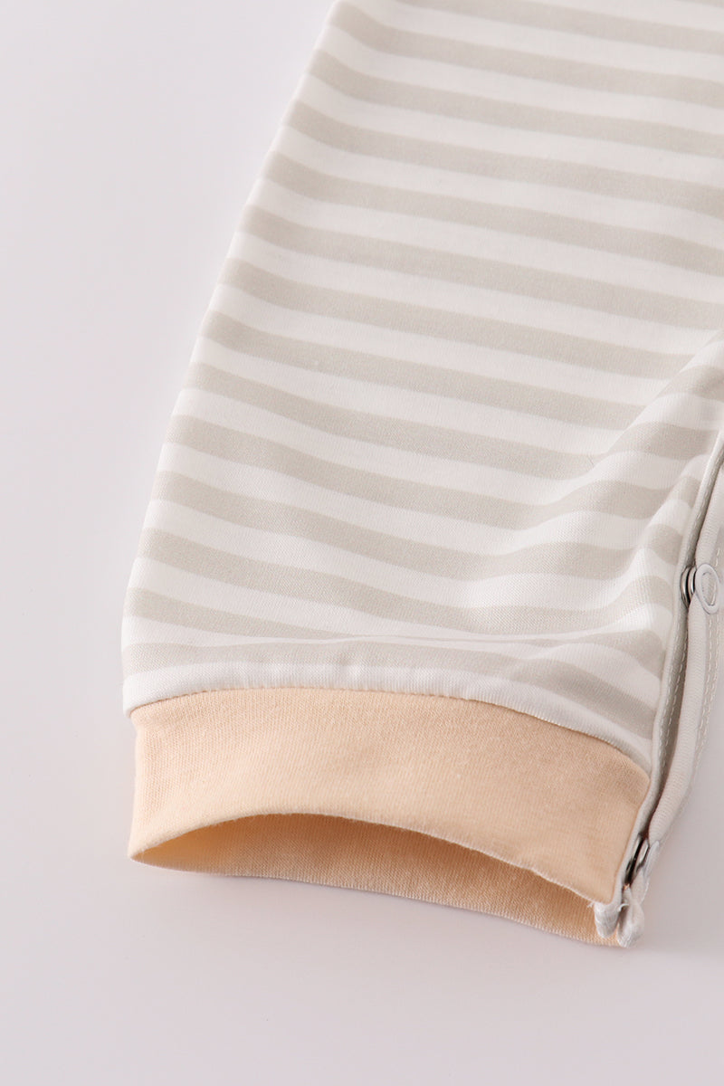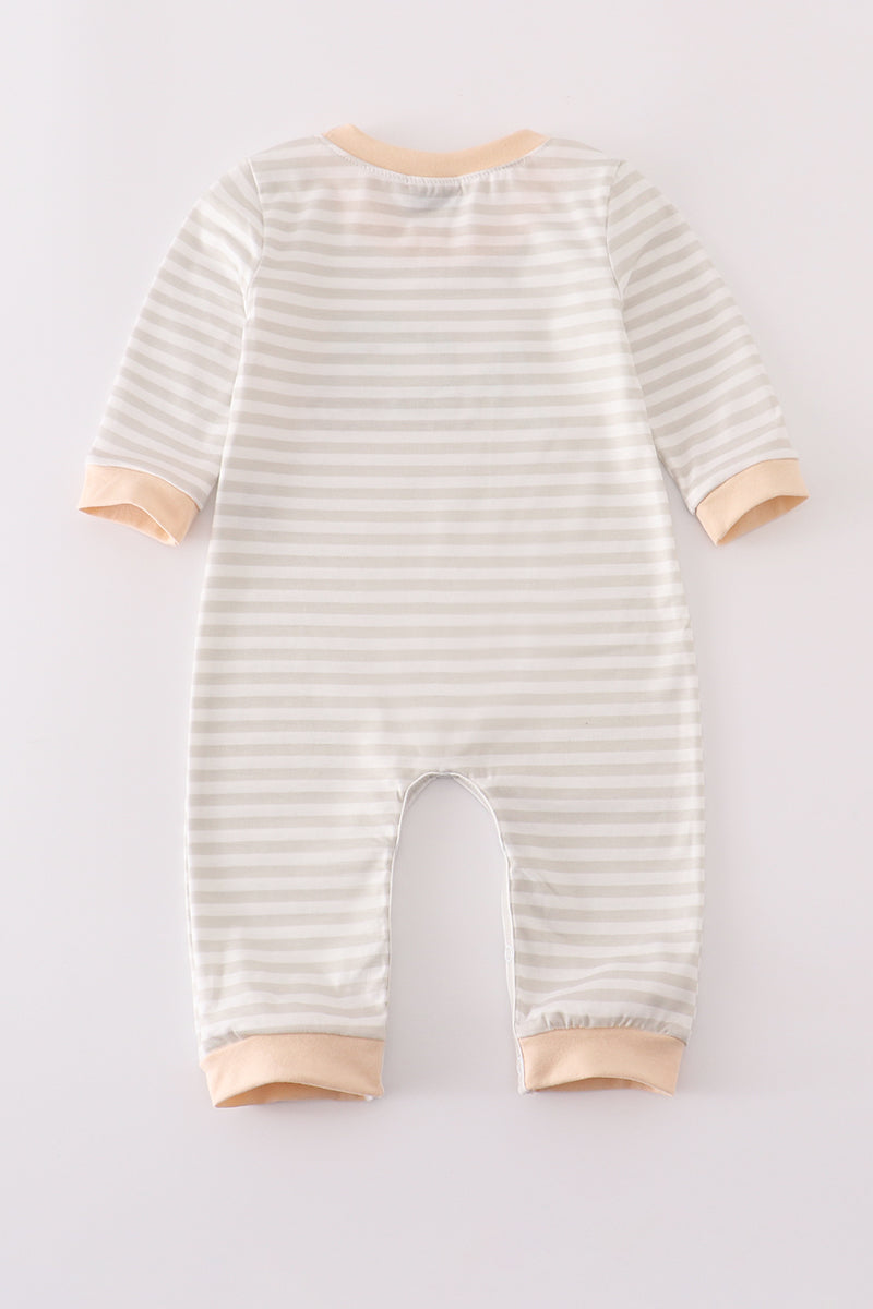 This cream romper features a fun excavator applique and playful stripe design, perfect for little adventurers. Soft and comfortable, it’s ideal for active days filled with imagination and exploration. Easy to wear and cute to boot!