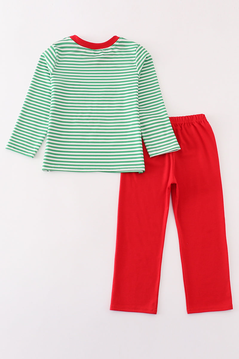 Celebrate the holiday season with our Green Stripe Christmas Deer Applique Boy Set! Featuring a playful deer applique on a trendy green stripe design, this set is perfect for any festive occasion. Made with high-quality materials for comfort and durability, your little one will love showing off their unique holiday style. Happy holidays!