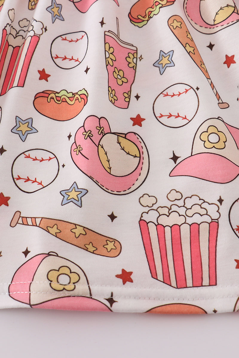 Get ready for a grand slam in this playful Pink Baseball Print Gingham Ruffle Shorts Set. Designed with a unique pink baseball print and adorable ruffled shorts, this set will be a home run for any stylish and fun-loving fashionista. Perfect for a day out at the ballpark or a casual summer outing.