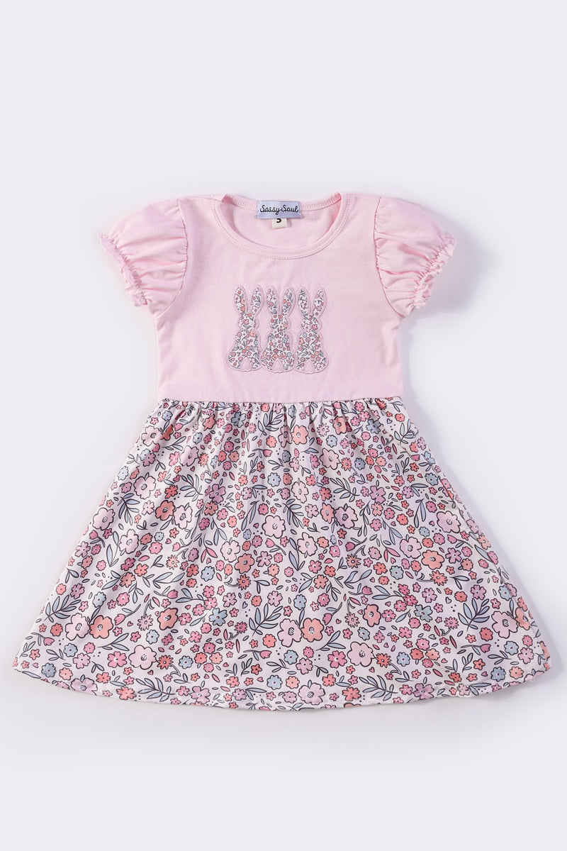 Hop into spring fashion with our adorable pink bunny applique floral girl dress! This charming dress features a cute pink bunny applique and a vibrant floral pattern, perfect for any little fashionista. Made with high quality materials, your little girl will be both comfortable and stylish. (Hop to it and add this dress to your cart now!)