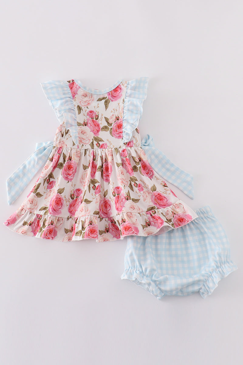 Add a touch of flower power to your little one's wardrobe with our Pink Floral Ruffle Bloomer Set! Featuring a playful pink floral print and cute ruffle details, this set is perfect for any fun-loving fashionista. Spruce up their style with this adorable and stylish addition!