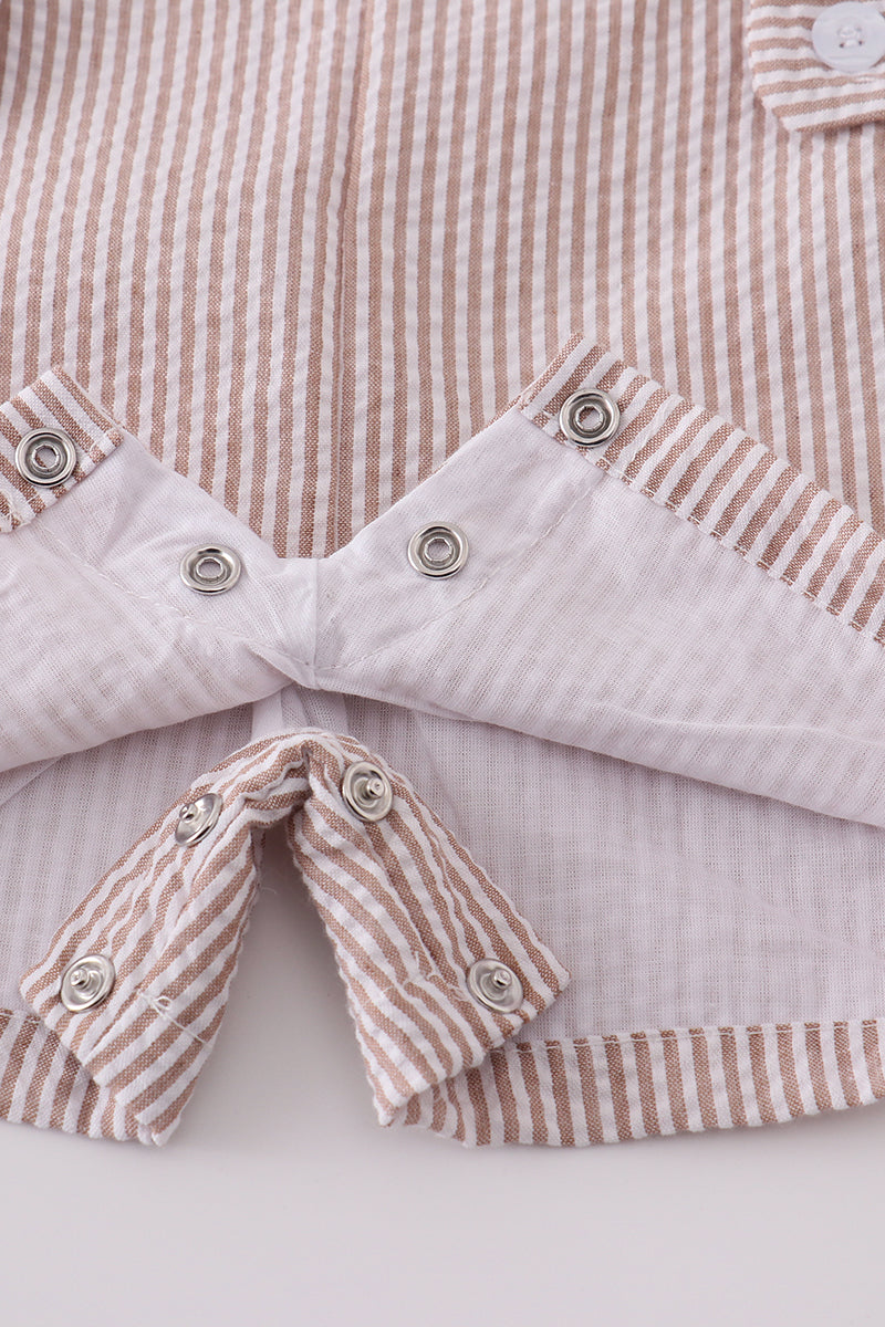 Step up your little one's fashion game with our Premium Brown Cross Embroidery Jonjon. This stylish and quirky outfit features premium embroidery with a playful cross design that is perfect for any occasion. Don't miss out on this unique and fun addition to your child's wardrobe!
