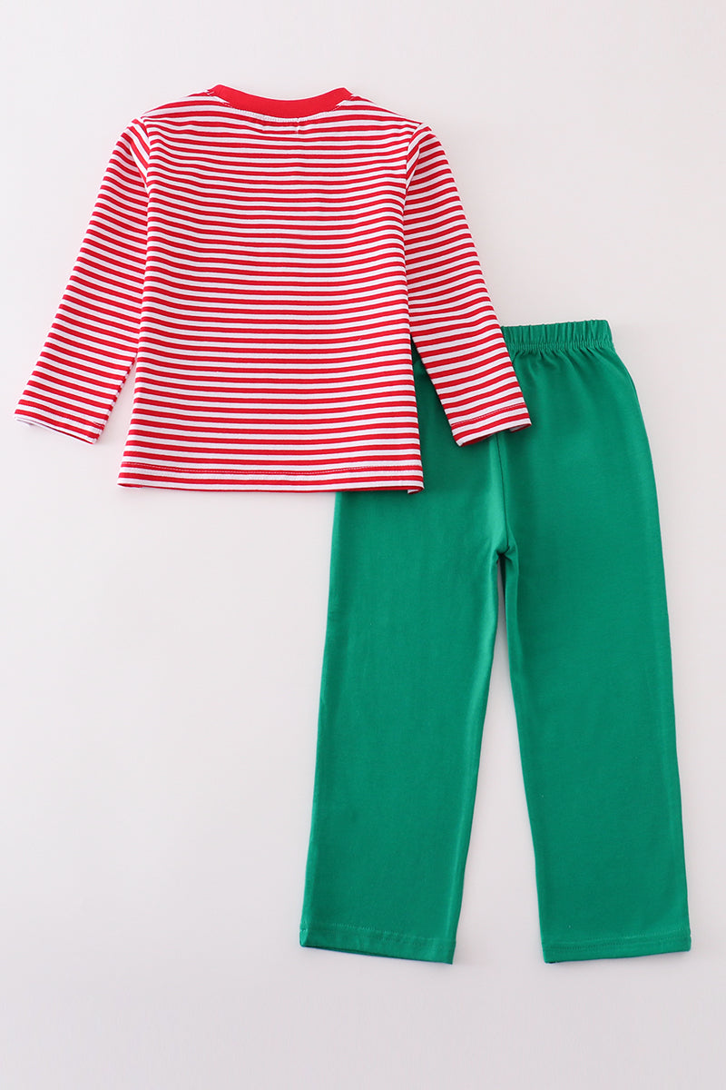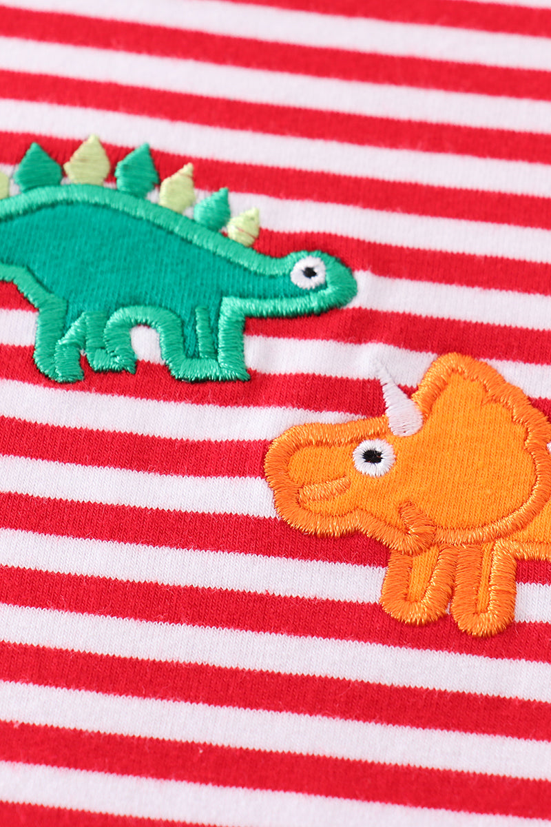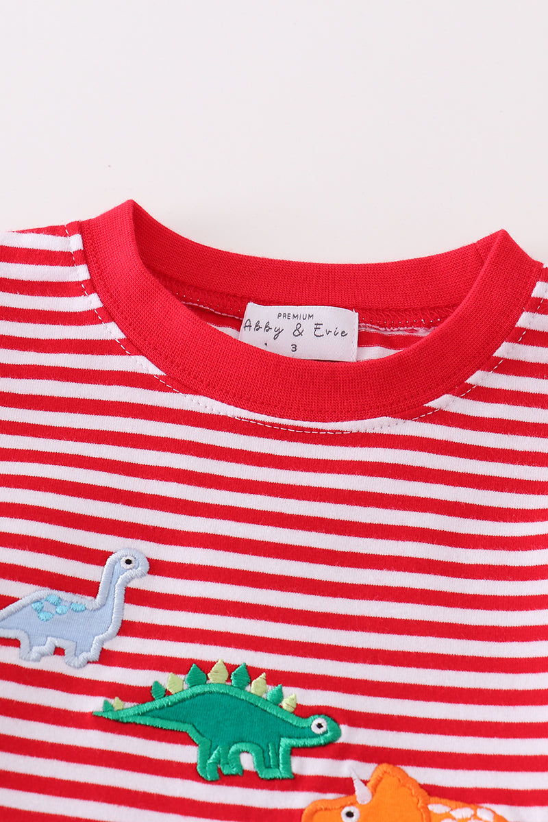 Unleash your little one's wild side with this premium red stripe dinosaur applique boy set. Made with quality materials and featuring a playful dinosaur design, your child will look and feel great. Perfect for adventurous playdates or just lounging around. (Roar-some for sure!)