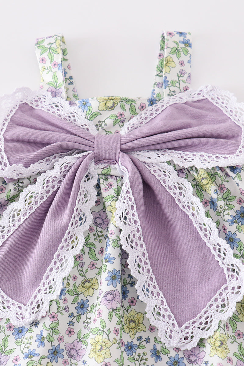 Get your little one stylin' in this Purple Bow Floral Girl Bloomer Set. With a cute flower pattern and adorable bow detail, this set will have everyone saying "aww"! Made for comfort and cuteness, it's perfect for any occasion. So go ahead, make your baby the center of attention!