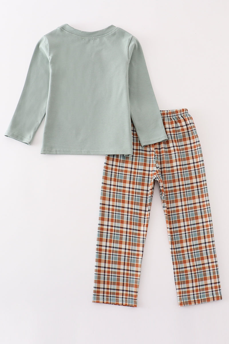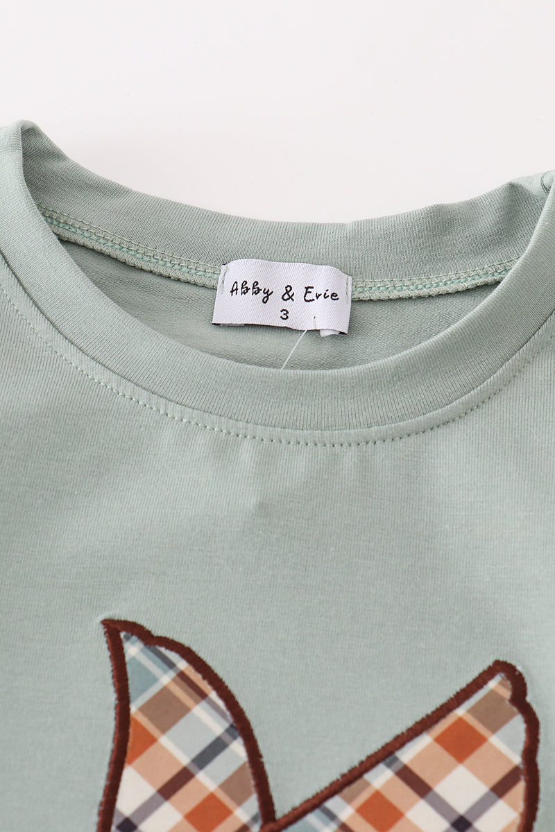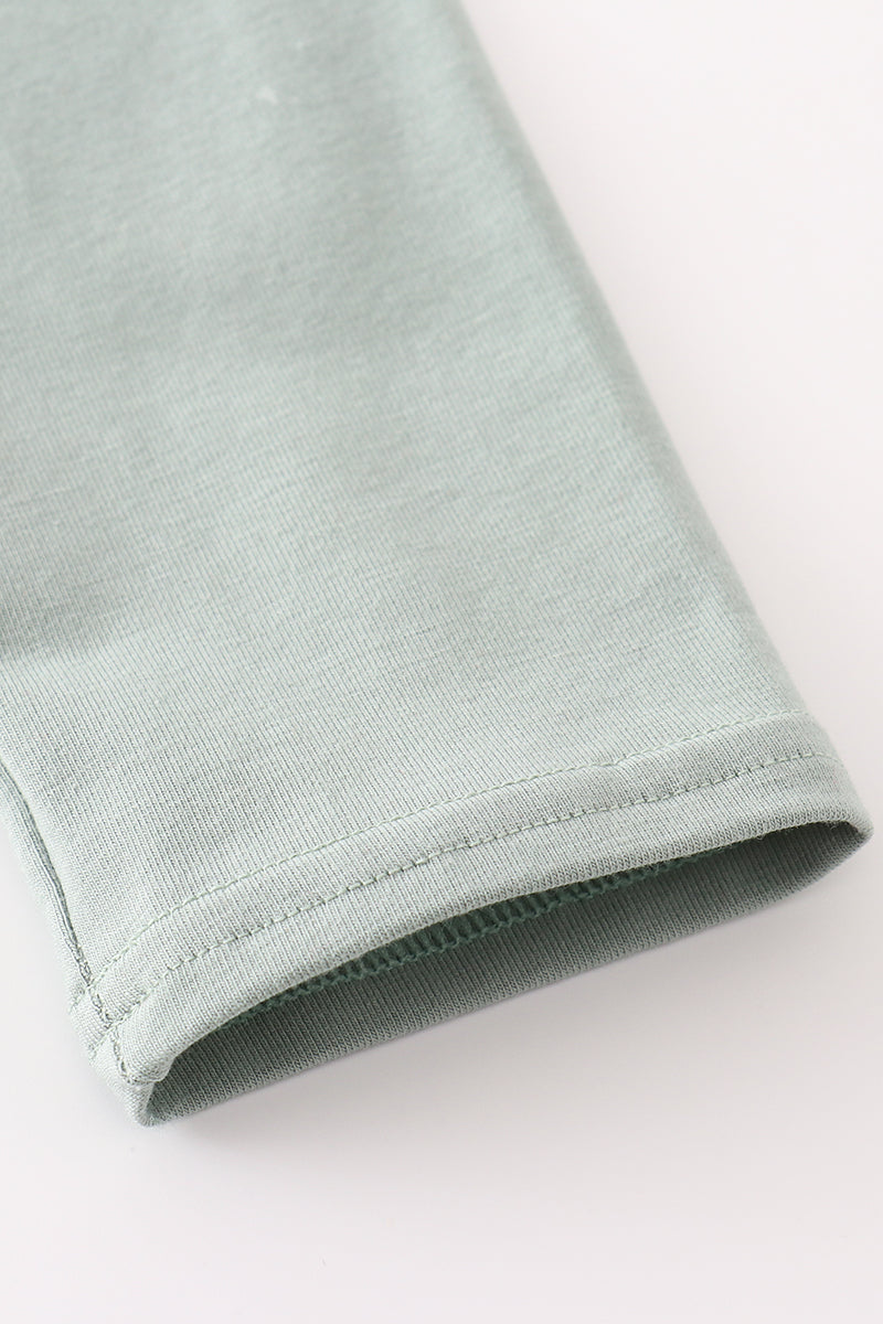 This sage duck applique boy set is quack-tastic! With an adorable duck design, your little one will look "fowl-tastic" in this outfit. Made with soft, high-quality materials, it's perfect for playtime or naptime. Get ready for some serious cuteness overload with this fun and unique set.