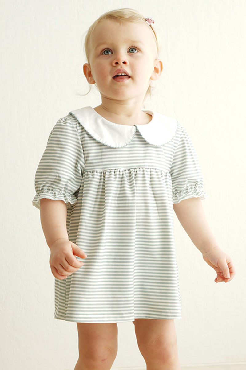 Sage stripe girl dress