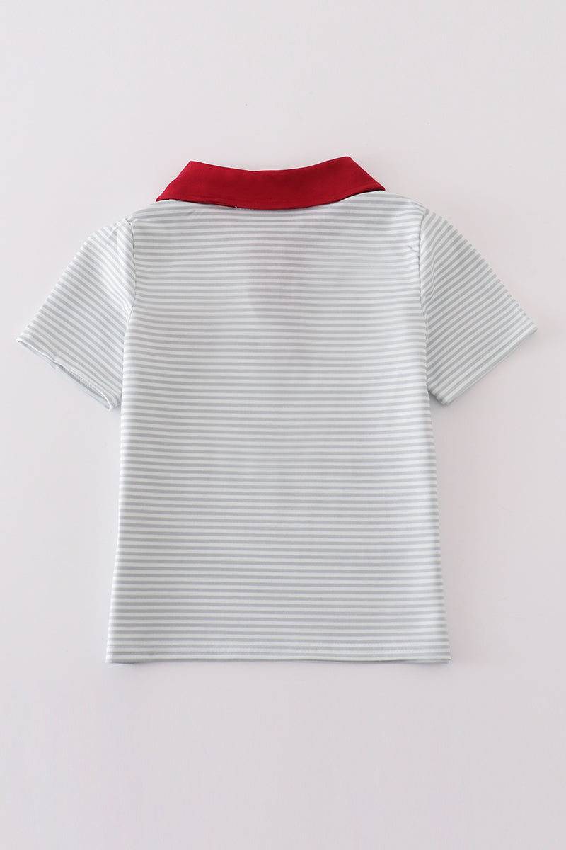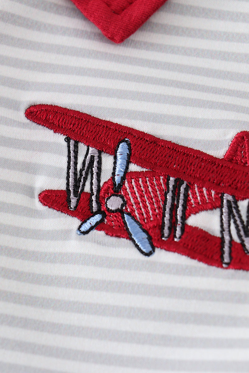 Sage stripe plane embroidery boy shirt