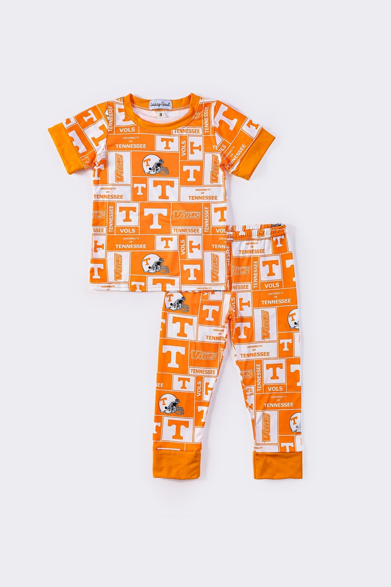 Get your little one rocking and rolling into dreamland with our Tennessee print boy pajama set! Featuring a fun and quirky design, these pajamas not only keep your child comfortable and cozy, but also add a touch of playful style to their bedtime routine. Say goodbye to boring PJs and hello to bedtime adventures!