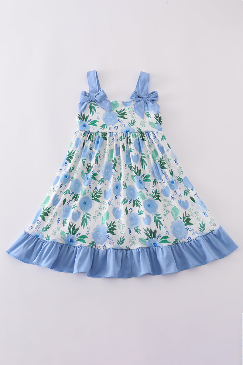 Looking for a dress as unique as your little girl? Look no further than our tranquil garden print bow dress. With a playful print and adorable bow details, she'll stand out from the crowd. Perfect for any occasion, this dress will add a touch of charm to her wardrobe.